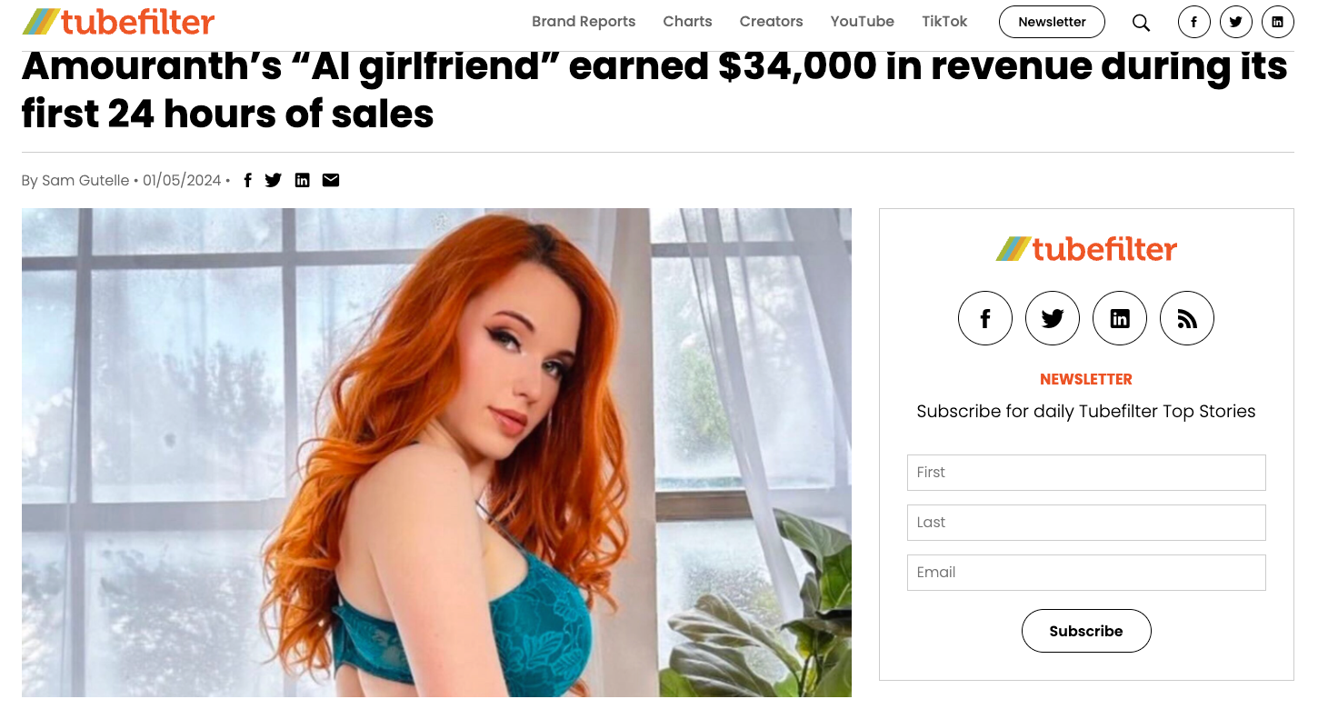 For example, a superstar in the world of ah… “streaming” who goes by Amouranth launched a “digital twin” in 2023: